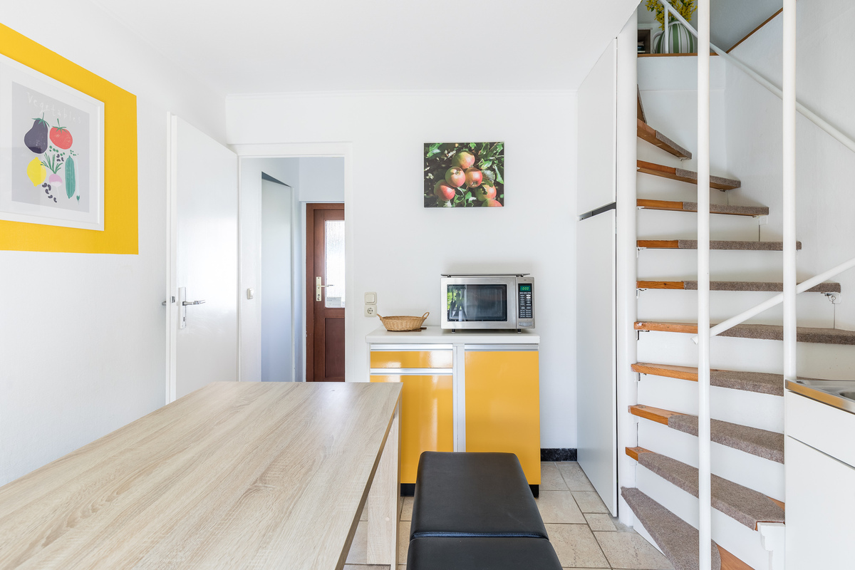 Das Ferienhaus ist idyllisch und ruhig gelegen. Es ist ein großer Garten, eine Schaukel und eine eigene Grillecke vorhanden. Das Haus (ca.40 m²) hat eine separate Küche. Es sind folgende Geräte vorhanden: Herd mit Backofen, Kühlschrank mit Eisfach, Wasserkocher, Kaffeemaschine, Geschirr usw. Das Schlafzimmer erreicht man über eine schmale Wendeltreppe. Es besteht die Möglichkeit, dass vorhandene Kinderreisebett im Schlafzimmer (OG) aufzustellen. Ein Wickeltisch ist nicht vor Ort. Das Bad hat Waschbecken, Dusche und WC. Im Wohnzimmer steht ein Fernseher. Hier können ebenfalls 2 Personen auf der Schlafcouch (ausgezogen 1,60x2,00m) übernachten. Das Ferienhaus ist ein Nichtraucherhaus und Tiere sind herzlich eingeladen.